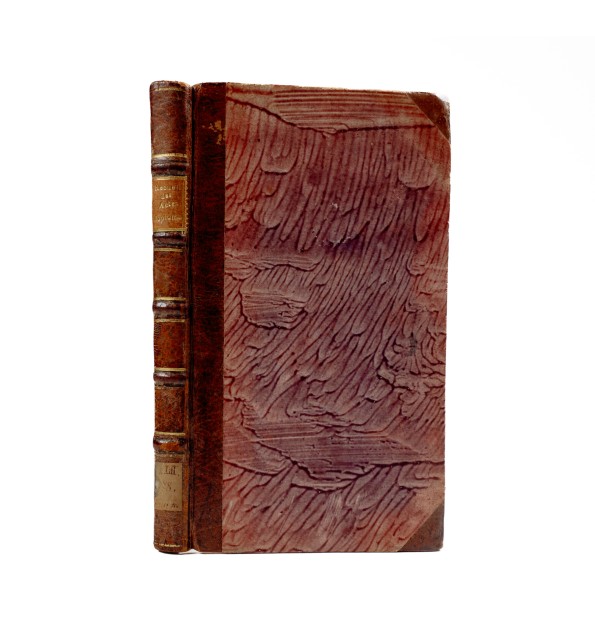 Demi-veau à coins, dos à nerfs orné de filets dorés, pièce de titre rouge, tranches rouges. Reliure de l'époque.