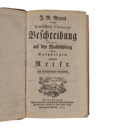 Édition originale du voyage du chirurgien Johann Michael Meyer au Spitzberg et de son récit de chasse à la baleine.