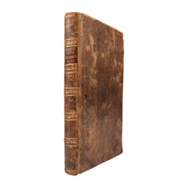 Plein veau, dos lisse orné de filets dorés, pièce de titre de maroquin bordeaux, filet d'encadrement à froid sur les plats, roulette à froid sur les coupes, tranches rouges. Reliure de l'époque.