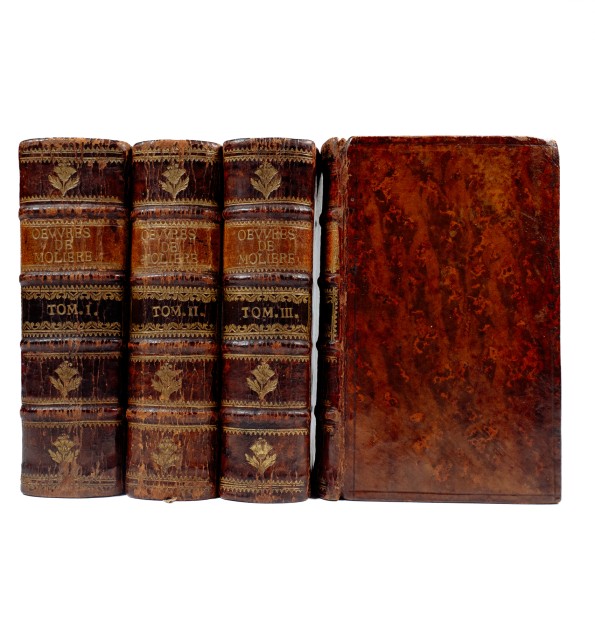 Plein veau, dos à nerfs orné de frises et de fleurons dorés, pièce de titre tabac, filet d'encadrement sur les plats, tranches rouges. Reliures de l'époque.