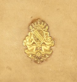 Dos cassé, premier plat et garde détachés, trace d'une étiquette en papier au dernier plat. Intérieur frais en particulier les planches reliées, une petite mouillure marginale dans la partie inférieure des feuillets.