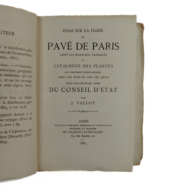 Rare opuscule sur la flore de rues parisienne au XIXe siècle, c'est-à-dire celle que l'auteur a pu trouver sur les voies publiques. Édition originale et unique.