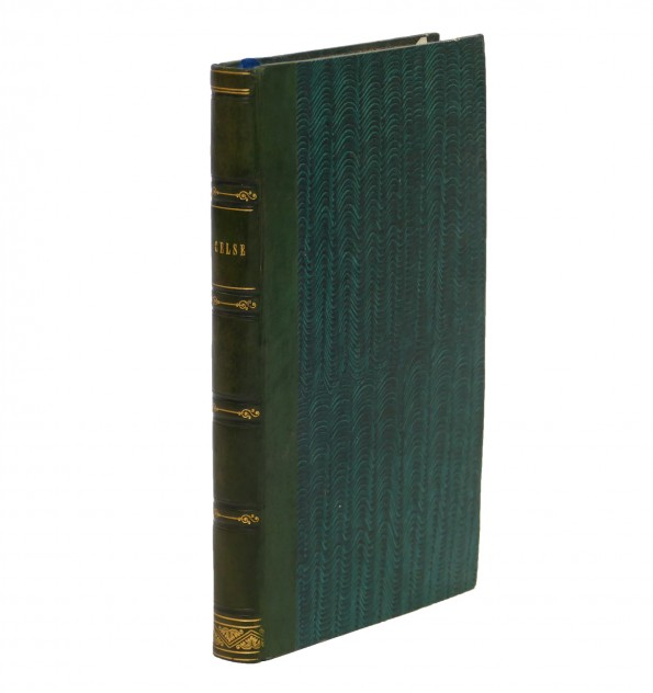Demi maroquin vert, dos lisse orné de filets à froid et de frises dorées, tranches jaspées. Reliure de l'époque.